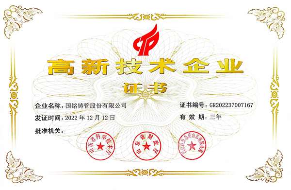 在半個多世紀的崢嶸歲月中,國銘鑄管依托雄厚實力和專業(yè)技術(shù)品質(zhì),堅持“技術(shù)提升質(zhì)量,品質(zhì)鑄就品牌,創(chuàng)新推動發(fā)展”的企業(yè)宗旨,為客戶提供滿意的產(chǎn)品和服務(wù)